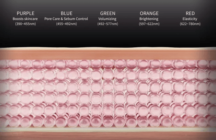 Mėlyna: Porų priežiūra ir sebumo kontrolė / 455~492nm
